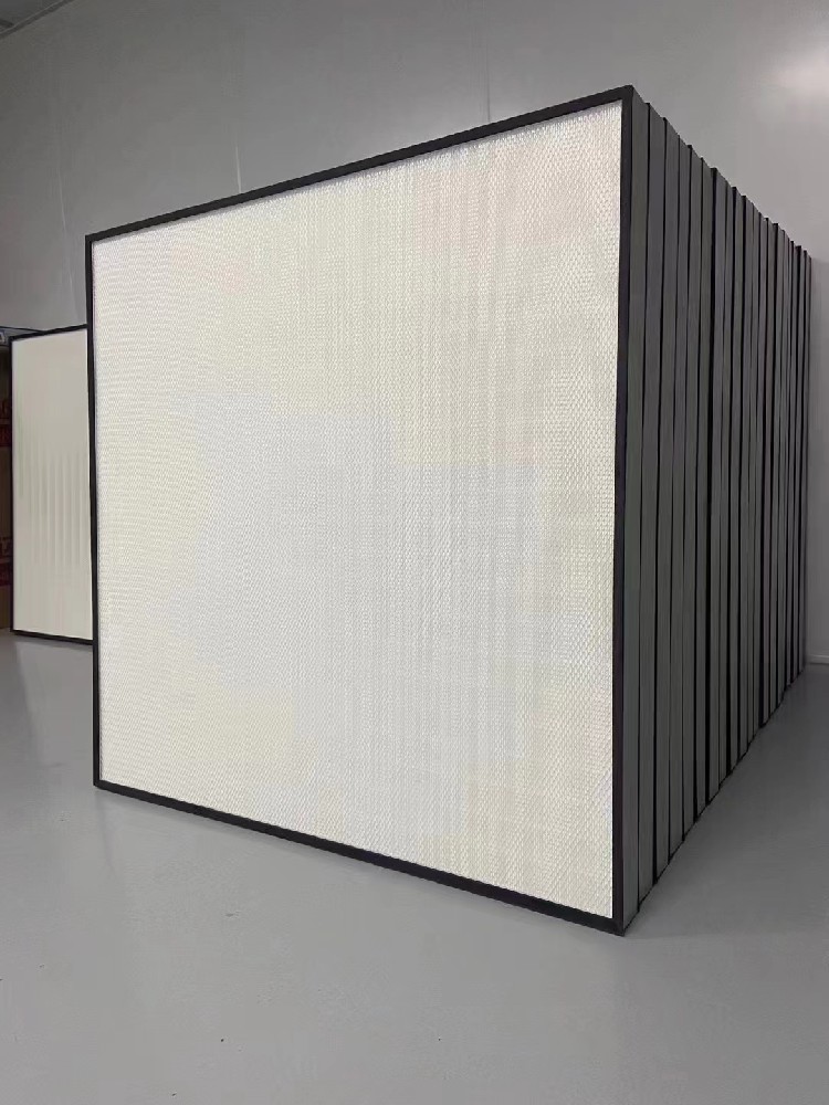 高效過濾器的工作原理基于濾材上的纖維間隙對空氣中微粒的攔截作用。當空氣通過過濾器時,纖維間隙會捕獲并攔截空氣中的細菌、病毒、塵埃等微粒,使其無法穿透濾材,從而達到凈化空氣的目的。高效過濾器通常采用金屬框架和過濾介質組成,過濾介質由玻璃纖維或其他合成材料制成,設計精巧,采用獨特的折疊式結構,不僅顯著增加了過濾面積,提高了過濾效率,而且保持了較小的體積和較大的過濾容量,便于安裝和維護。